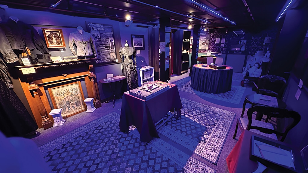 And then there’s a collection of Quija boards. Berry notes that no, you can’t actually talk to the dead via a Quija board. After all, it is highly unlikely that Parker Brothers mass-produced a portal to the other side. Also known as talking boards or spirits boards, they came into fashion in America after the Civil War when traveling mediums used them with grieving families wanting to communicate with a lost soldier. They eventually morphed into an innocent parlor game, depicted in illustrations by Normal Rockwell and popular at Halloween parties in the Roaring Twenties. It wasn’t until the 1973 film, The Exorcist, in which it’s implied that’s how the demon got into the house, that Ouija boards developed a sinister connotation. Berry laughs that some parents won’t let their kids touch the Ouija board available for use in the museum.